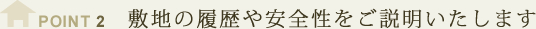 その点、弊社はお客様にご納得いただけるまで、敷地の使用履歴や安全性などについて詳しくご説明しております。どうぞ安心してお問い合わせください。
